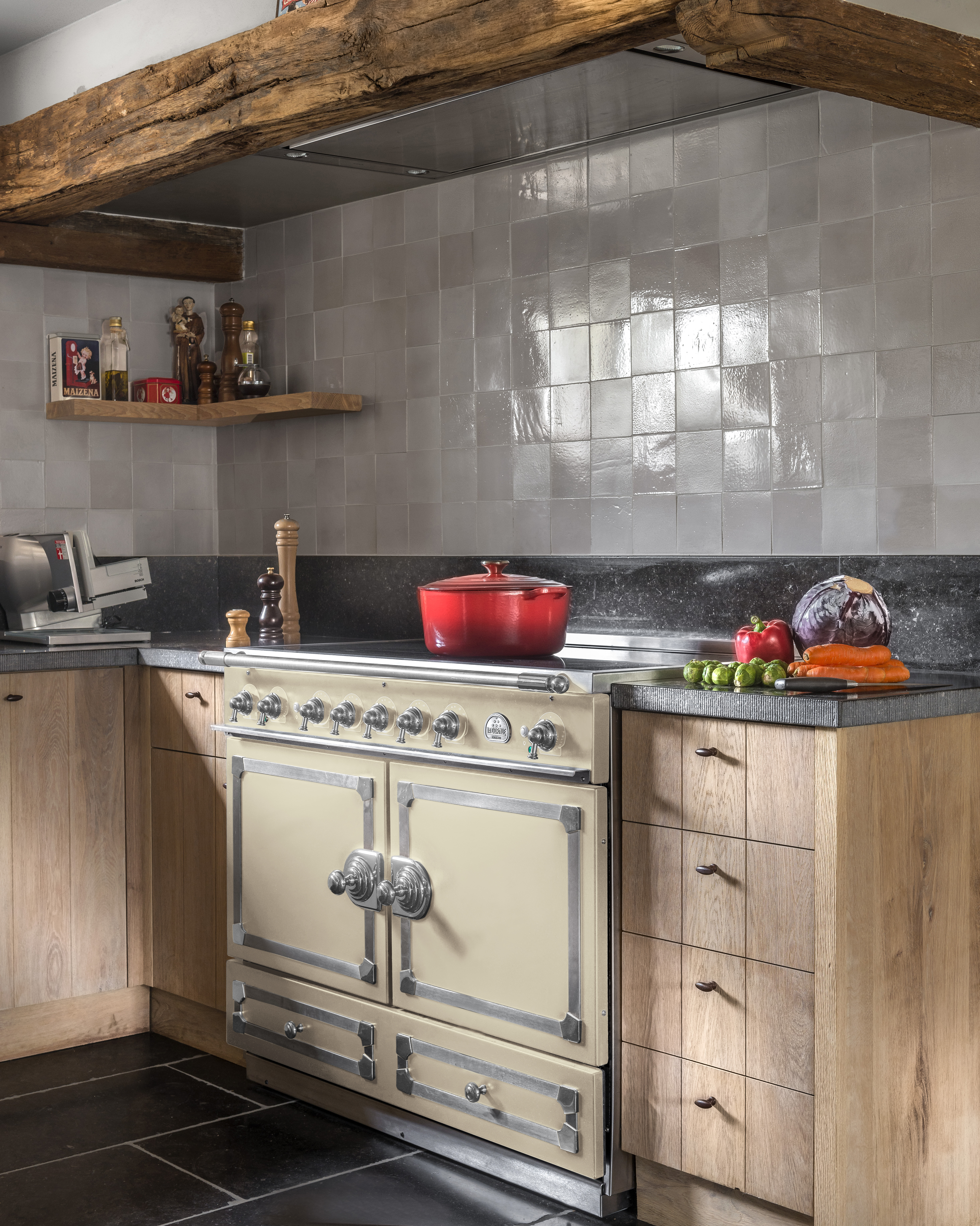 Below the hob, there are three cooking cavities: a fanned main oven with multiple functions, a conventional second oven and a separate electric grill. Designed with ease of use and maintenance in mind, the Farmhouse 100EI incorporates Easy-Clean enamel for simpler cleaning and a Maxi-Clock programmer for precise control.