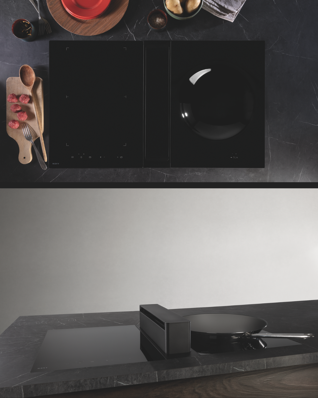 Novy hobs are inspired by the trend for open plan living and the need to optimise your full kitchen space. Their induction hobs offer control, refinement and freedom.