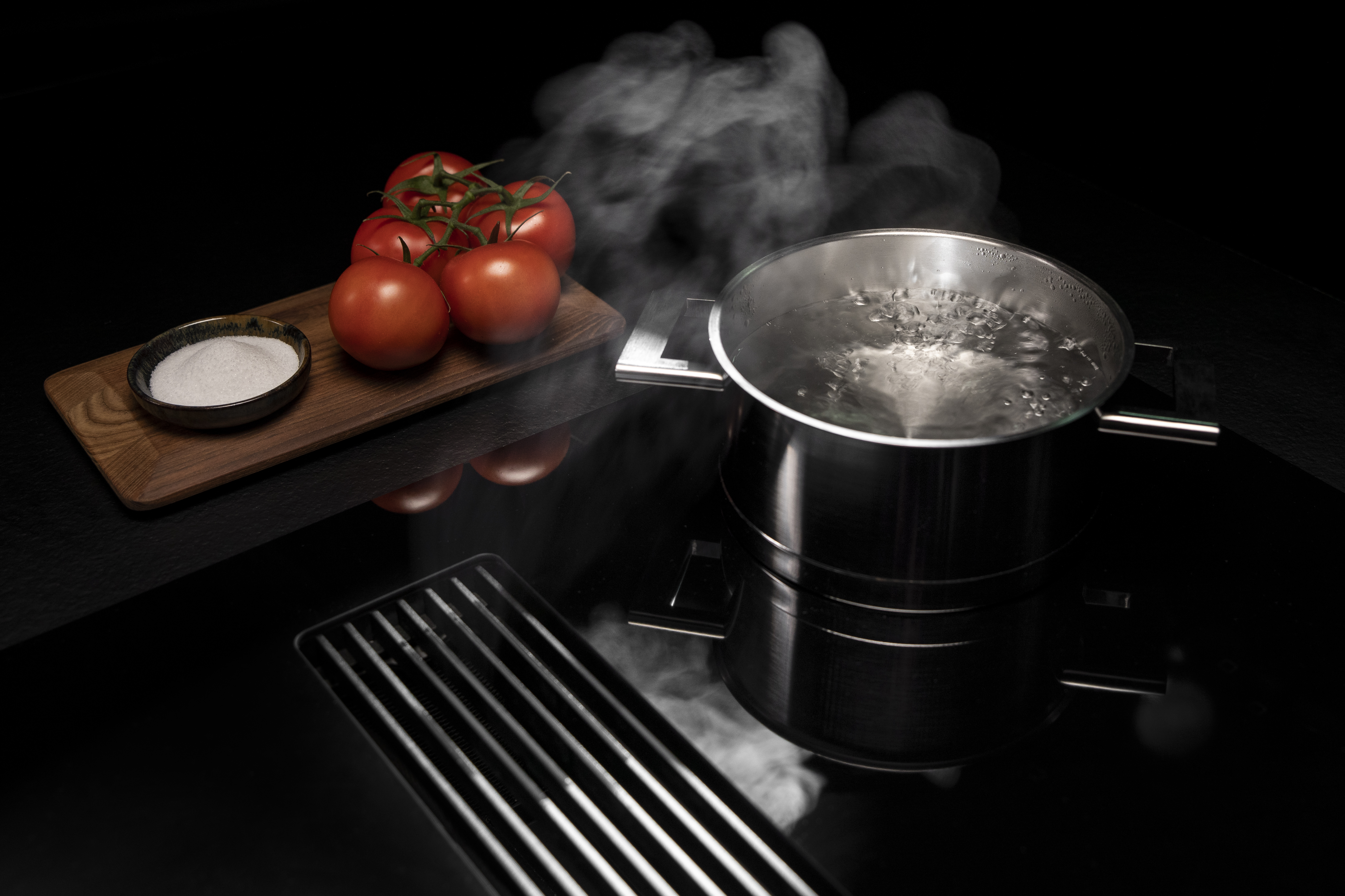 The collection offers everything from vented induction hobs with specialised extraction systems to high-tech induction hobs that allow you to control your cooker hood at the touch of a button. You can also choose specially designed options for both teppanyaki and wok cooking.
