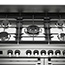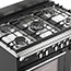 The stainless steel hob includes 5 gas burners with cast-iron pan supports. The stainless steel upstand and brushed metal control knobs add durability and style, while the brushed metal handrail adds a traditional touch.