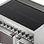 The five-zone induction hob features a versatile bridging zone and advanced functions such as melt, simmer, keep warm, pause, and pan detection. A touch-control digital programmer and seamless glass cooktop provide a sleek, modern interface. Choose between the professional stainless steel finish with brushed metal control knobs or the refined anthracite finish with soft-touch black control knobs.