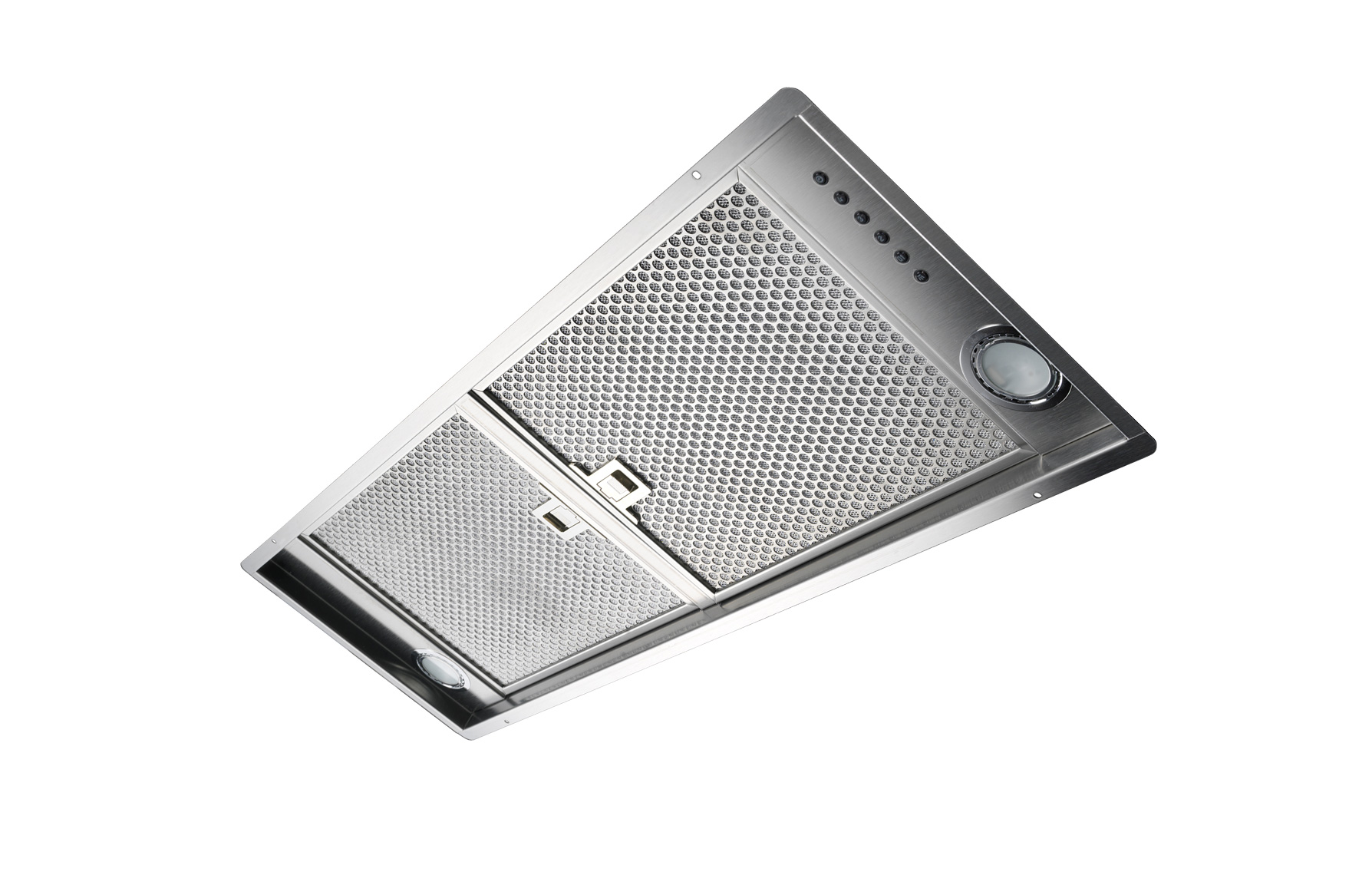 This hood offers three speeds, plus a boost function for when you need that extra bit of power. Twin LED lights illuminate your cooking below, whilst illuminated push button controls make this hood easy to use. You also get an auto fan off setting if there is no operator action for four hours, plus a 10-minute delay shutdown mode to clear any residual fumes.