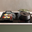 The induction cooktop offers four cooking zones, which can also be connected on one side into a powerful flexzone, allowing you to place your pans anywhere within the zones and for the use of a griddle. There are also numerous functions, such as automatic pan recognition, cooking timer, grill function and a keep-warm function, that are all controlled by touch control sliders. The controls are central in the cooktop, which leaves extra space for cooking.