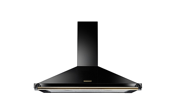 Finished in satin black, plus the choice of a brass or chrome trim, this cooker hood offers three speeds selected by slider controls and two LED lights to illuminate your cooking.
