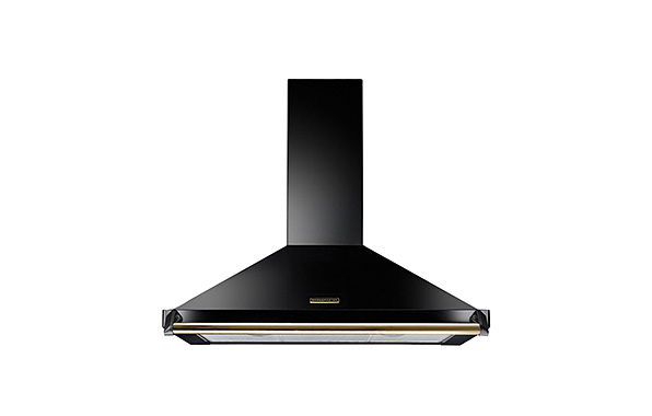 Finished in satin black, plus a choice of chrome or brass trim, this cooker hood offers three speeds selected by slider controls and two LED lights to illuminate your cooking.