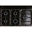 The gas hob features five burners with a total output of 11.40kW, supported by semi-gloss cast iron pan supports and a half-smooth, half-grooved griddle and a wok cradle for flexible cooking options.